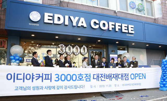 이디야커피가 20일 대전광역시 서구에 대전배재대점을 오픈하며 국내 커피전문점 최초로 가맹점 3000호점을 돌파했다. 이로써 이디야커피는 2001년 중앙대 1호점을 연 이후 18년만에 3000호점을 오픈하며 국민 커피브랜드로 확실히 자리매김했다.