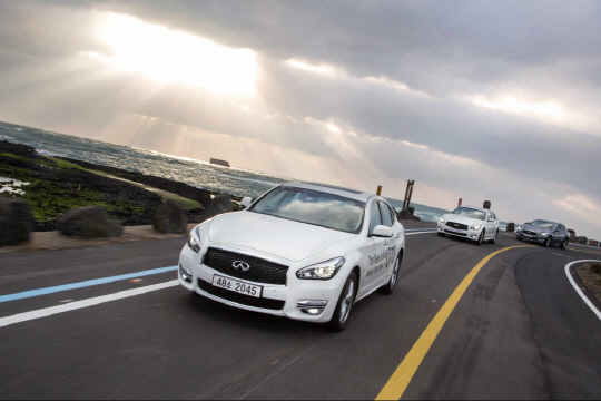 럭셔리 퍼포먼스 세단 더 뉴 인피니티 Q70의 미디어 시승회가 11일 제주에서 열렸다. 뉴 Q70의 매끈한 디자인, 강력한 드라이빙, 최첨단 기술을 경험할 수 있는 기회였다.