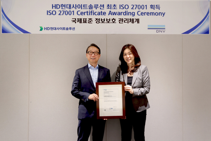HD현대사이트솔루션이 국제표준화기구(ISO)가 제정한 국제표준 정보보호관리체계(ISO 27001) 인증을 획득했다.