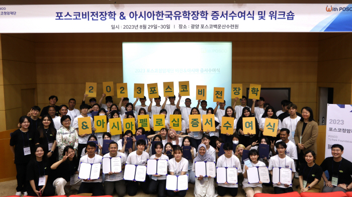 포스코청암재단이 지난 29일 전남 광양 포스코백운산수련원에서 올해 새롭게 선발된 포스코비전장학생 47명과 아시아한국유학장학생 17명에게 장학증서를 수여하고 1박 2일간 워크숍을 진행했다고 31일 박혔다.